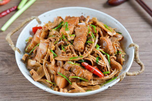 秋季适量食肉有利于身心健康,不但可以弥补苦夏带来的体力消耗,还可以为即将到来的冬季储存能量。 五花肉炖笋干是南方的传统炖菜。笋干选择嫩笋尖,浸泡后直接和肉一起炖。吸收足够肉脂和肉汤的笋干柔软嫩滑,五花肉不柴不腻。两者真的是完美的结合。