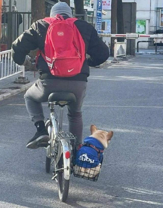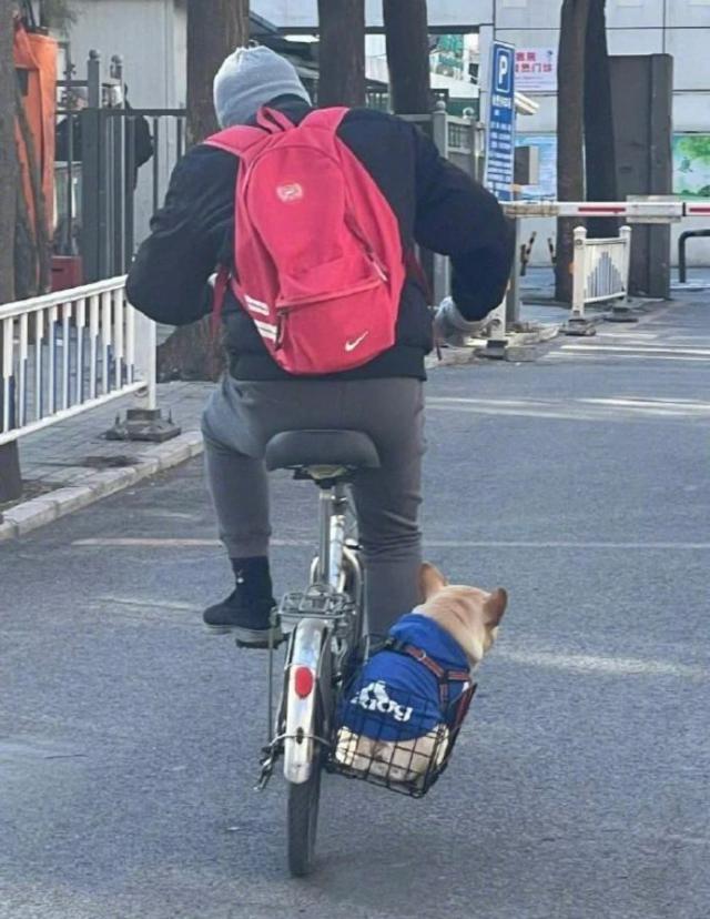 可以看出,主人已经非常努力地推车了。