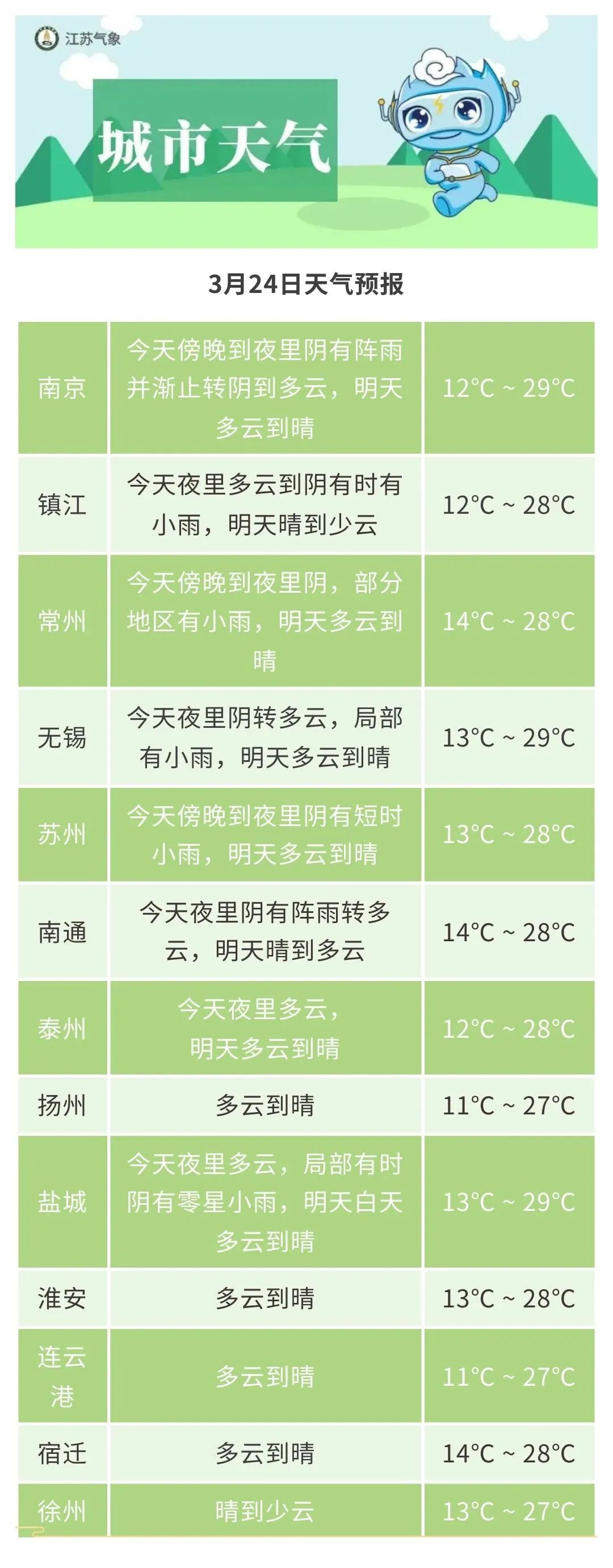 全省晴转多云。最高气温:全省32~33℃;最低气温:省内东北部地区约11℃,其他地区约15℃。~16℃。全省南风,风速:晚上4级左右,白天5级阵风6-7级。