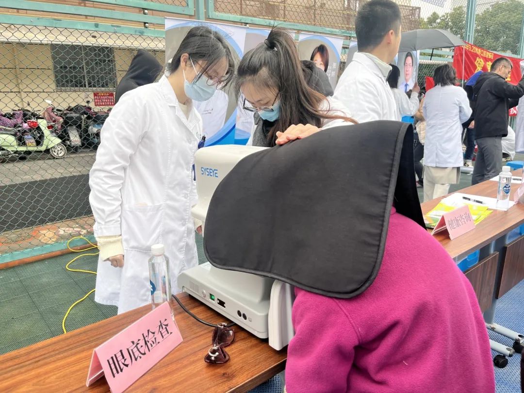 "阿姨,你先别担心,来,我们先做个眼压检查。“在3月15日的免费门诊现场,眼科医生耐心地检查屈光、眼底检查、眼压测量等。每一位前来咨询的居民,分析眼底照片,初步筛查青光眼等眼病。详细检查疑似青光眼病人,并提供进一步的诊断和治疗建议。与此同时,石湖市荡镇社区卫生服务中心的医务人员还为居民提供了血压、血糖测量、家庭医生签约、健康咨询等免费服务。
