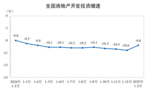 过去全国房地产开发增长率正在增长。 12 本月首次出现下降收窄。1-2 每月房地产开发投资同比减少 减幅比全年收窄9.8%。 0.8 %。
