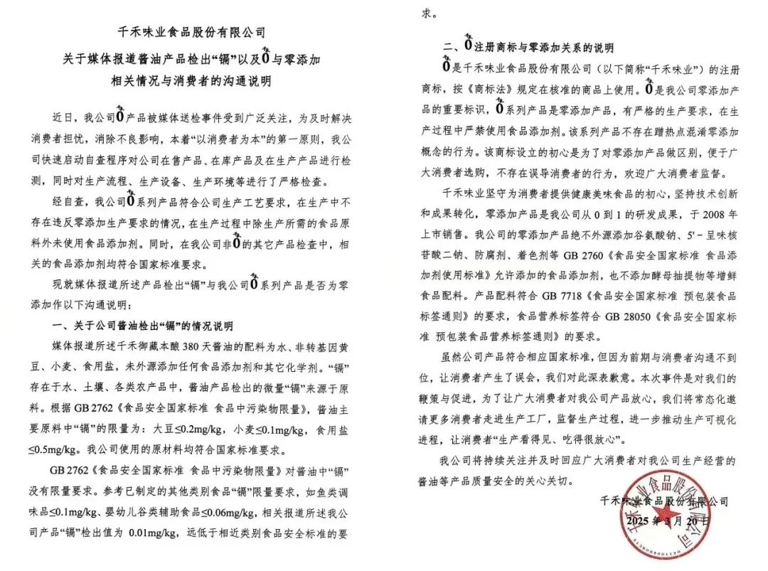 那些没深究或没看完声明的人,可能至今还以为千禾的“零添加”有猫腻。