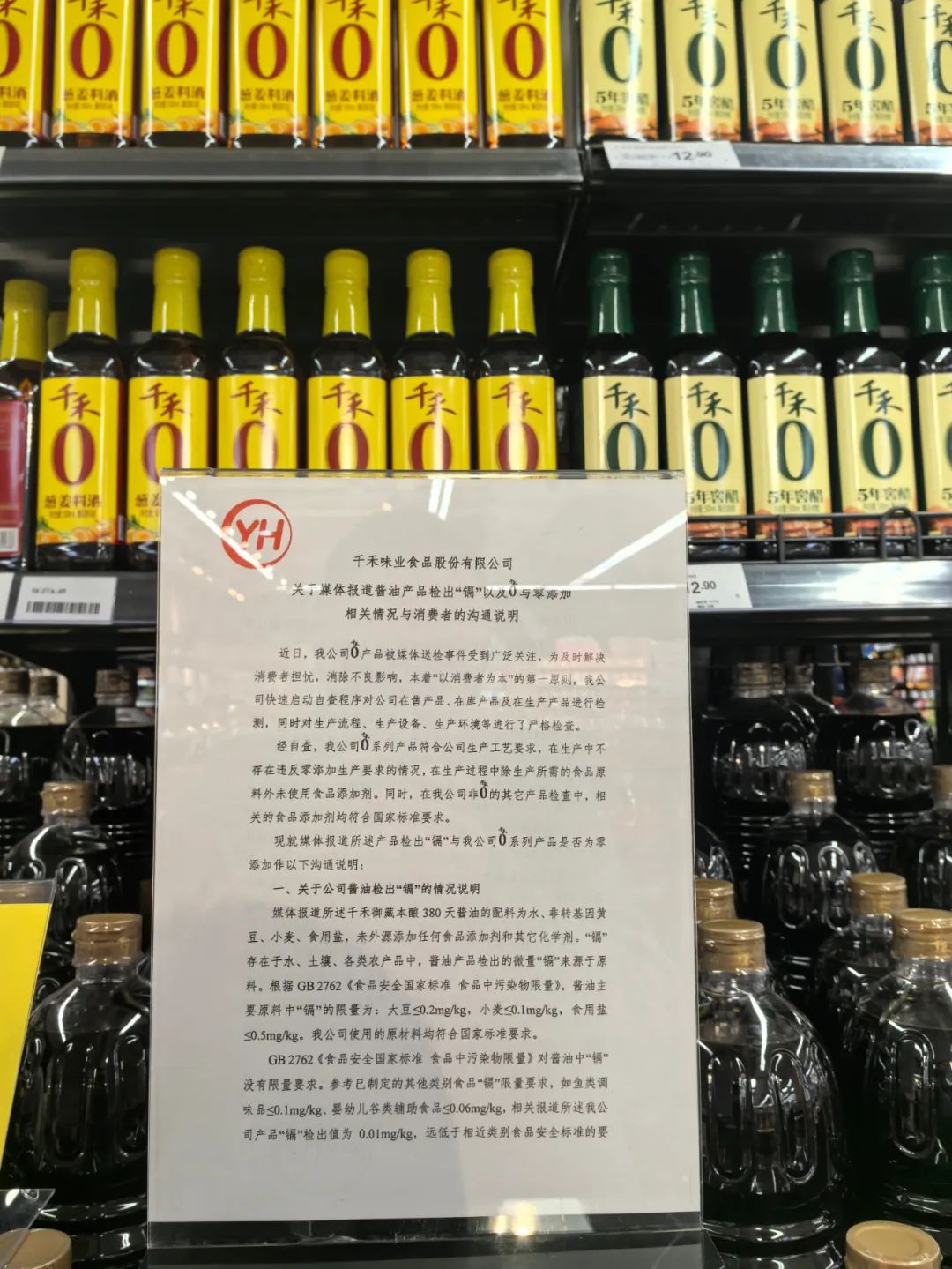 千禾将声明张贴到线下货架