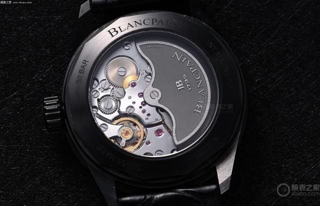 看得见的地方,可以看到夹板采用倒角处理工艺,并且有拉丝处理的痕迹。摆陀选用磨砂、缎面打磨等工序,上面刻有BLANCPAIN(宝珀)字样。值得注意的是,摆陀是在 18K 在黄金的基础上进行镀黑处理,从而与黑陶瓷形成呼应。没有什么比低调奢华更好的了。但是在肉眼看不见的地方,宝珀也对机芯进行了很精细的打磨。“良心珀”,名副其实。