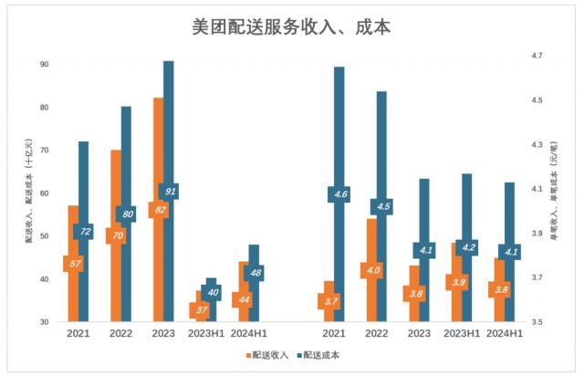 2024 年 H1,配送 116 一亿笔,每笔收益,成本分别是 3.86 元、4.13 人民币,每一次亏损 0.34 元,亏损率 9%;