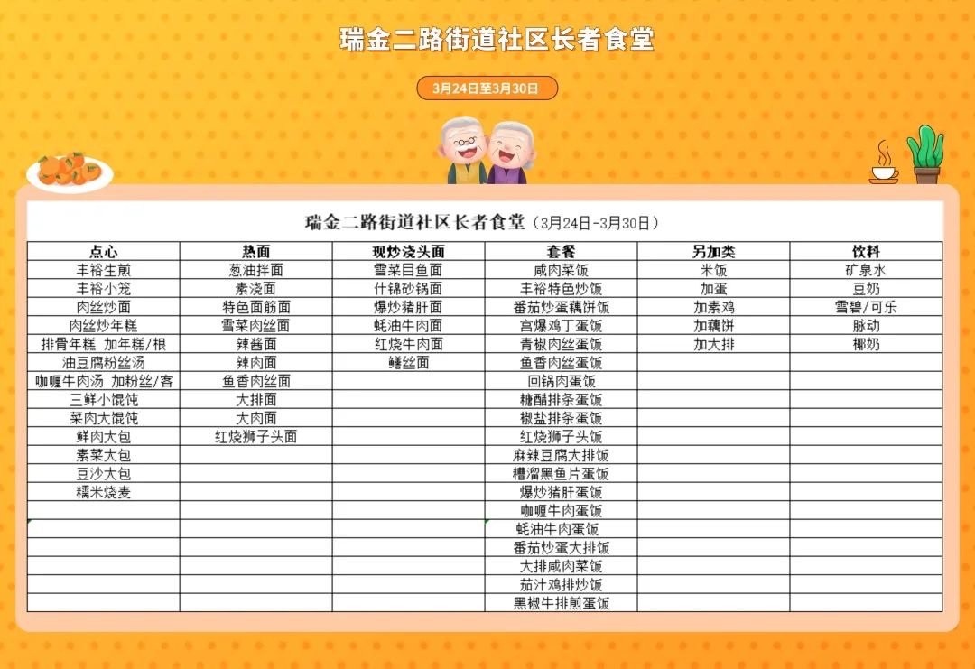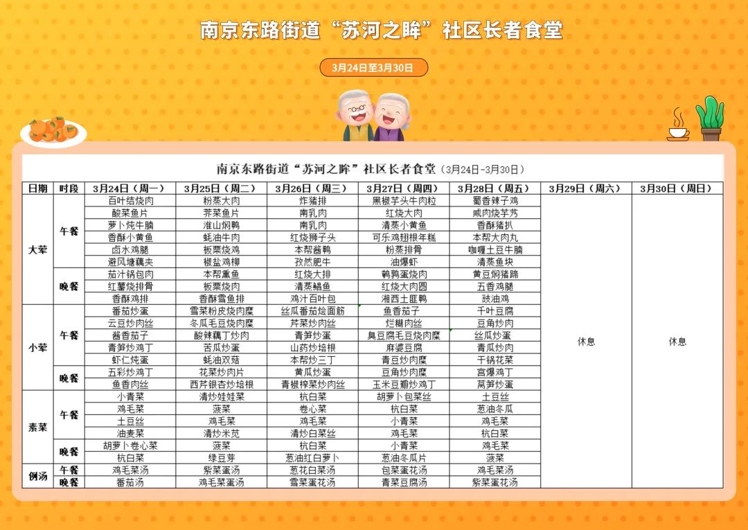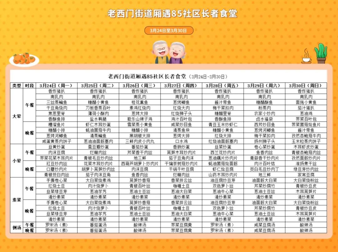 黄浦区社区长者食堂每周菜单(3.24-3.30)来了,请检查~