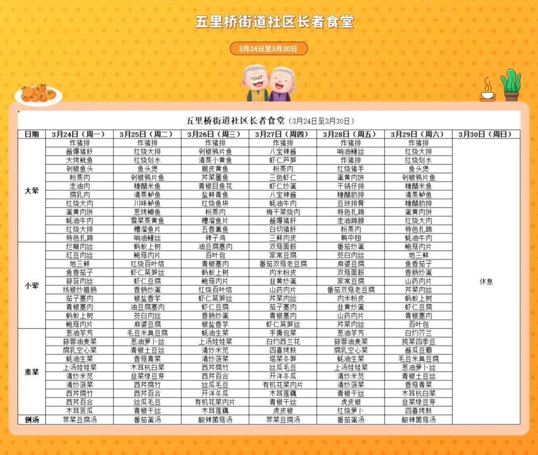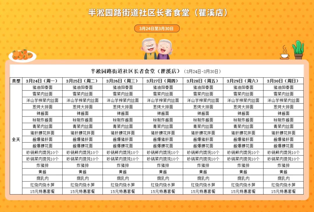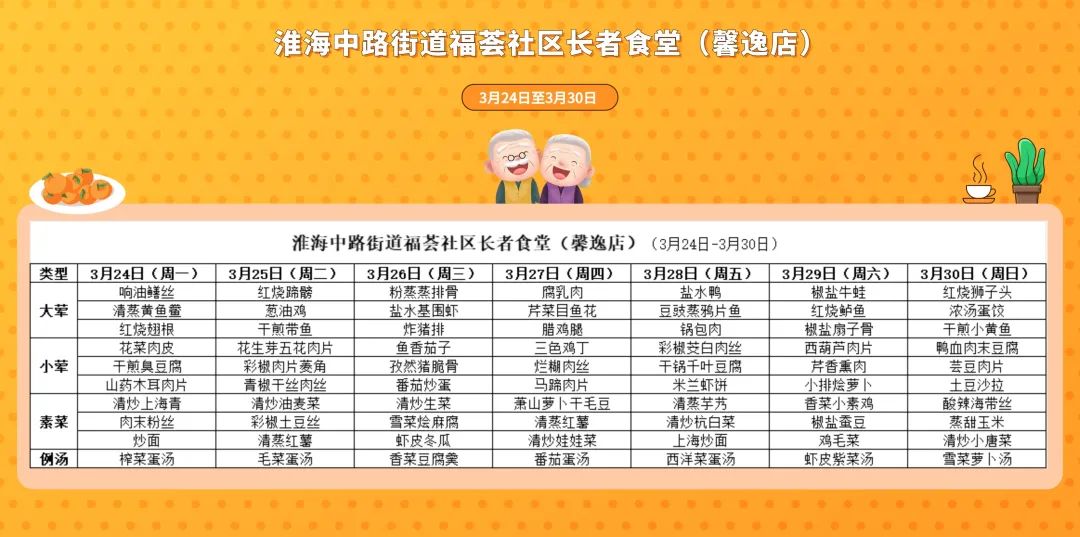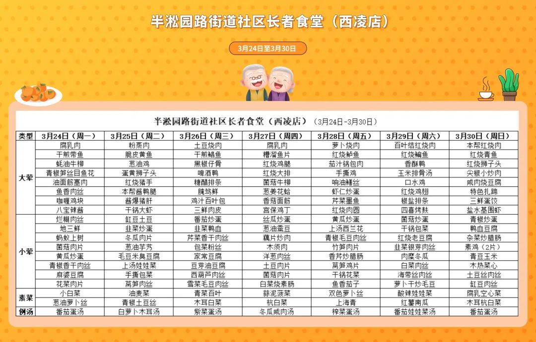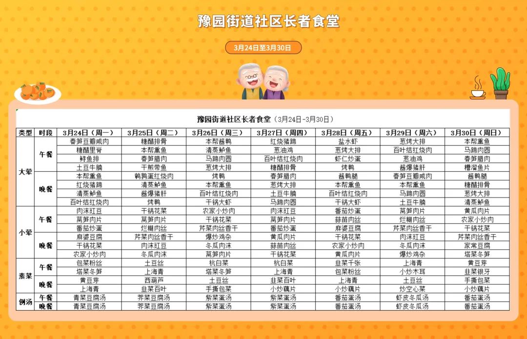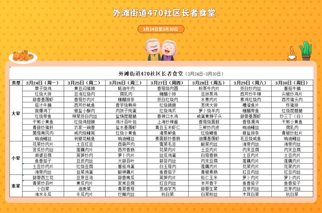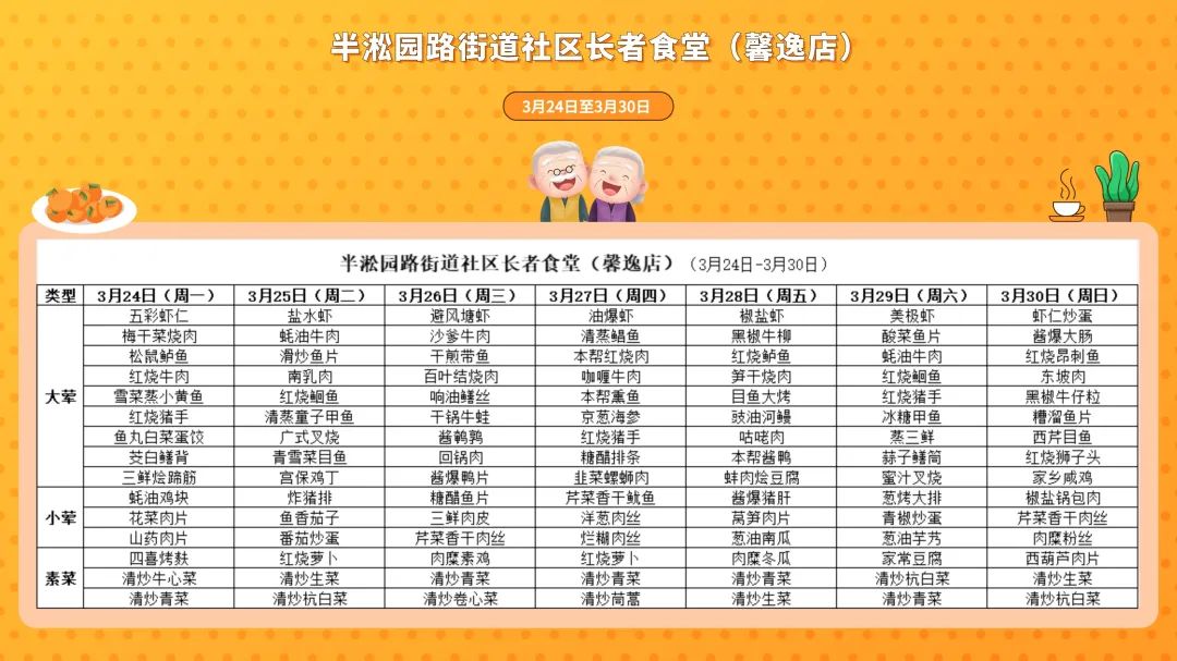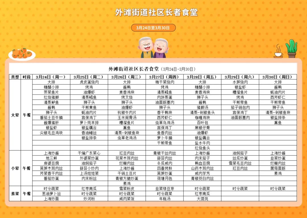 原题:“黄浦区社区长者食堂每周菜单(3.24-3.30)来了,请查看~”