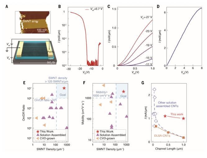 这类优良的设备性能显示出单手密排碳纳米管阵型在未来高性能碳基纳米电子芯片中的巨大应用潜力。