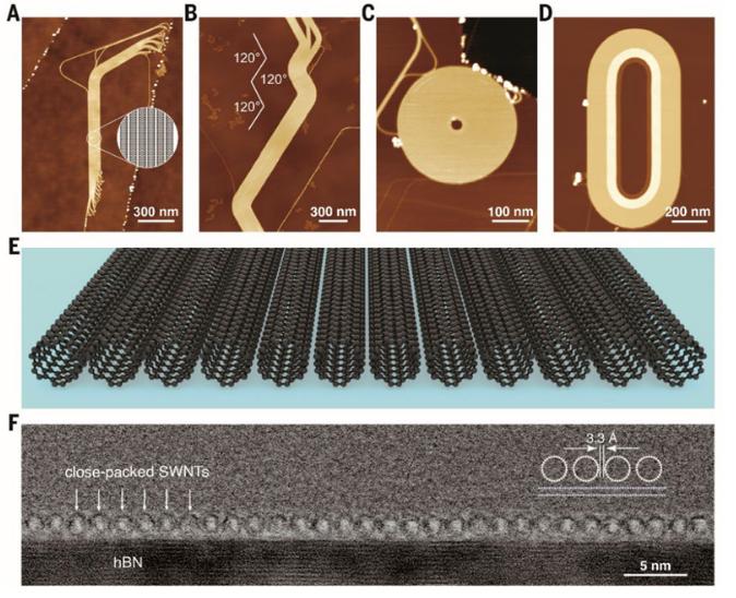 本研究报告了对称手性、高度对齐、电气特性优异的单壁碳纳米管阵型紧密排列的发现。这些结果意味着单壁碳纳米管在纳米电子设备和电路中的实际应用迈出了重要的一步。本研究提出的生长机制为制造复杂的纳米结构提供了一种方法,尤其是在开发新的范德华材料方面。