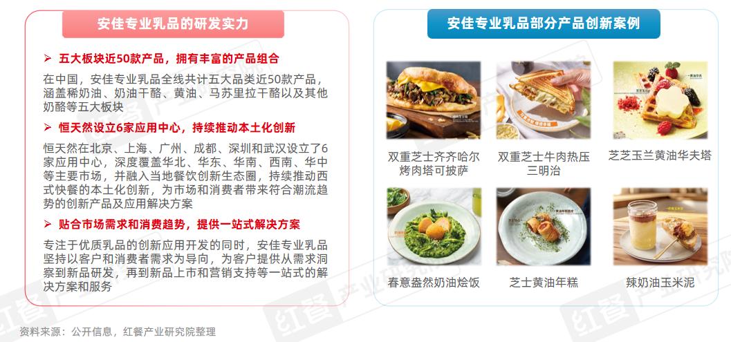 以安佳专业乳品为例,依托恒天然的新西兰草饲牧场资源和专业的研发团队,其在北京、上海、广州、成都、深圳和武汉设置了6家应用中心,可为餐饮品牌提供从需求洞察到新品研发,再到新品上市和营销支持等一站式的解决方案。