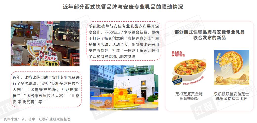 例如,比格比萨自助、芝根芝底、乐凯撒披萨等品牌均选择与全球知名乳制品提供商恒天然旗下的安佳专业乳品进行了多次联动,包括新品联合发布、线下互动活动等多种形式,进一步提升了品牌形象和消费者信任度。
