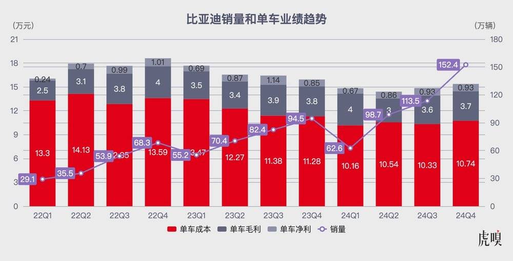 这一打法以工程师思维为核心,以“技术不断升级但售价不增”为标准,使比亚迪在行业内极具竞争力。