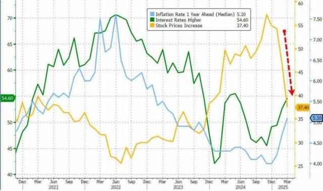 另外,44.5% 一些消费者预测股市会下跌,比二月份有所增强。 11 %,比 2024 年 11 月高出超出 22 %。