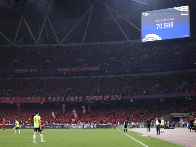 每场比赛的进场人数通常在半场休息或下半场开始后不久在现场播出。但这一次,破纪录的喜悦与场上比分的尴尬形成了鲜明的对比。上半场开始不到 30 一分钟,中国队就来了 0 比 2 落后。