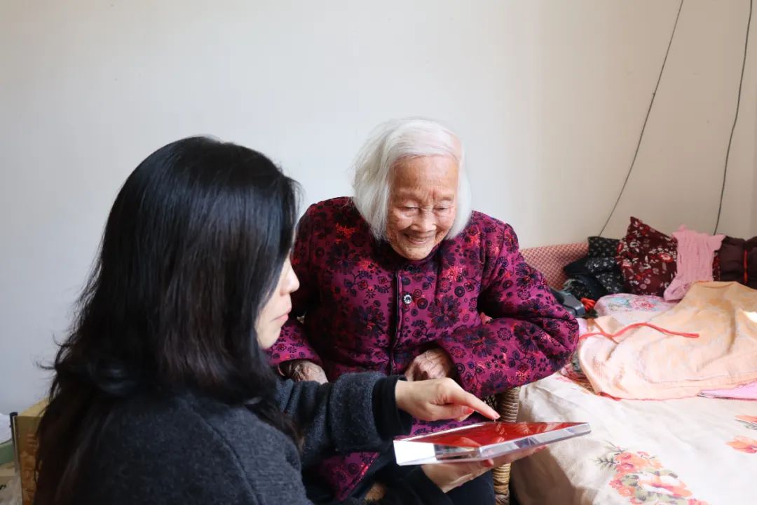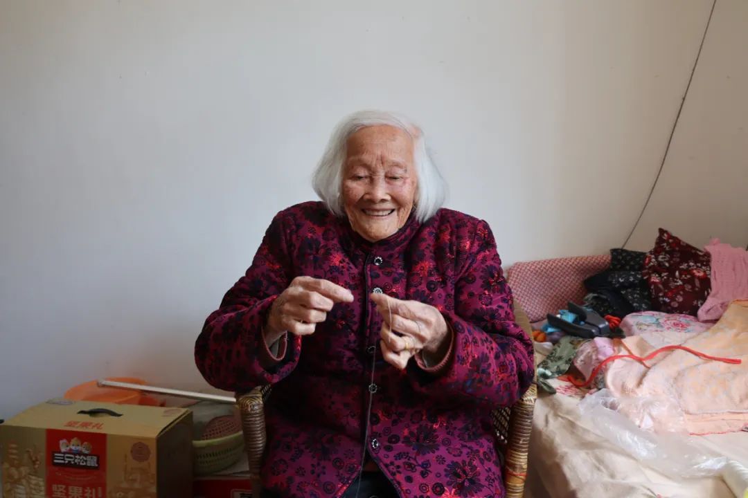 最近,在枫泾镇新黎村,宋美英老人庆祝了她的百岁生日。宋美英出生于1925年。她刚过完生日,脸色红润,精力充沛。她基本上可以照顾好自己,平日里保持着非常健康的作息。宋美英的小儿子汤金祥说:“妈妈胃口好,不挑食,肉吃得少,特别喜欢糯米和腌咸菜。