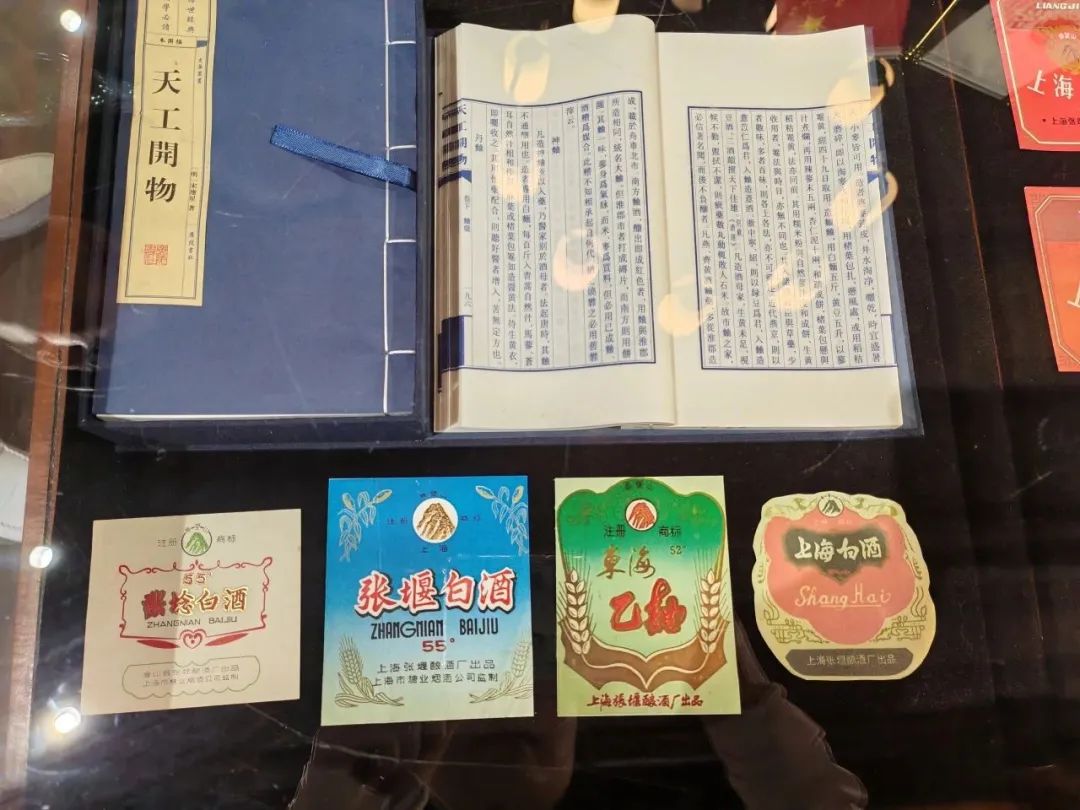 公司成立于2022年11月的葡萄酒文化展厅,展示了不同类型的白酒,介绍了老上海白酒的历史、酿造技艺,以及“留溪佳酿”上海白酒的挖掘和传承。
