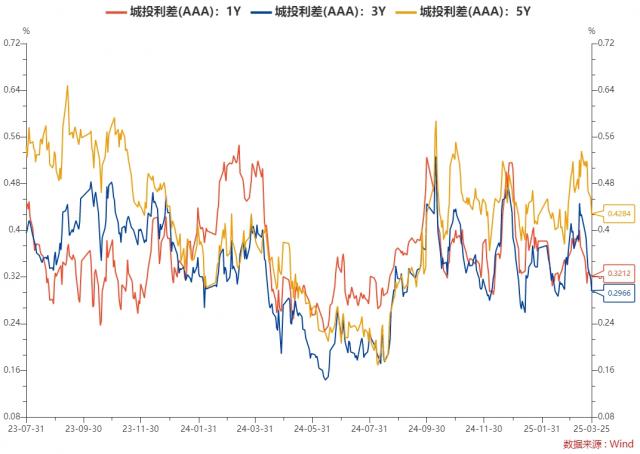 5. 最近城投债(AAA)每个期限的利差走势和数据