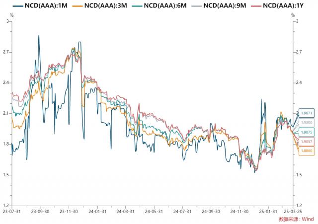 全国及主要股份制银行一年期同业存单二级市场最新交易 1.91% 周围,比上一天有所下降。