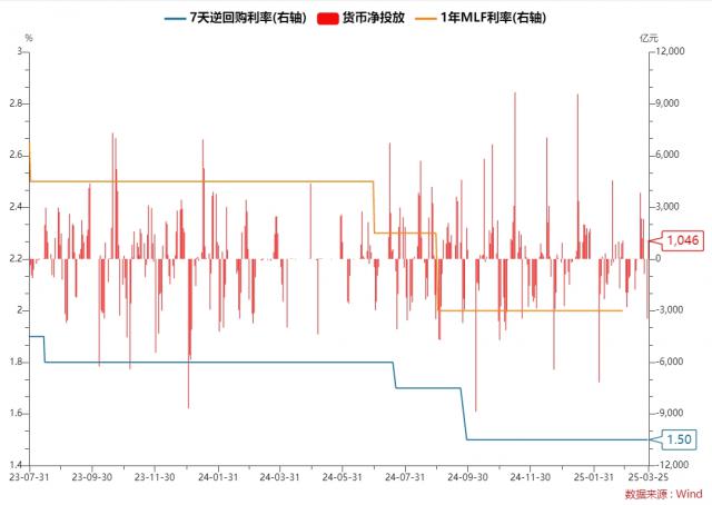 央行 3 月 25 日以固定利率、数量招标方式进行 3779 亿元 7 天期逆回购操作,其中,操作利率 投标量1.50% 3779 亿元,中标量 3779 亿元。Wind 数据显示,当天 2733 逆回购到期1亿元,由此计算,当日净投放 1046 亿元。