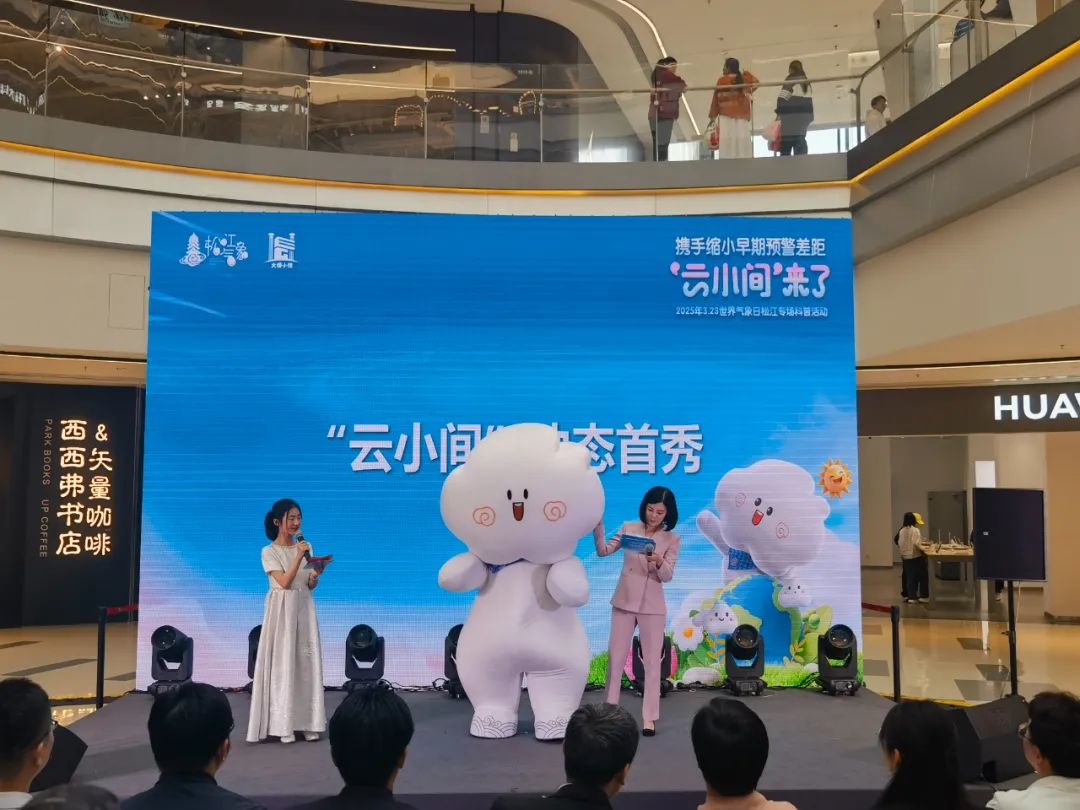 此次特别活动还发布了松江第一个气候IP“云间”,又称“云宝”。它的云形和名字与松江的美称“云间”相对应,既承载了松江的文化基因,又传达了可爱友好的气质。另外,现场还正式发布了围绕“云小间”IP形象的文化创意设计大赛,公开为全社会征集作品。“我们不仅走进公共空间普及气象知识,还希望通过将知识嵌入文化创意产品中,让市民和朋友更新和丰富对气候的认知。”松江区气象局副局李礼介绍。