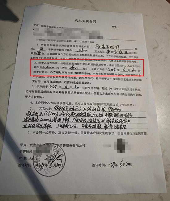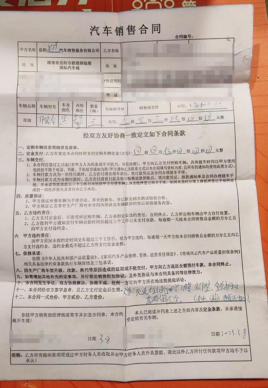 这种混乱的背后,是经销商合同文本的随意性和不透明性。根据消费者提供的合同,有些 4S 商店的合同条款甚至涉嫌 “霸王条款”,将商业风险转嫁给消费者,或通过模糊的表述,使客户在签订合同时难以察觉潜在风险。