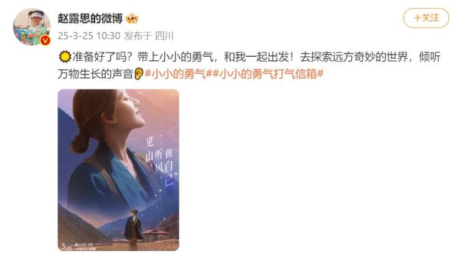 三月二十五日,赵露思发布了微博,宣传综艺节目《小勇气》即将播出的消息。