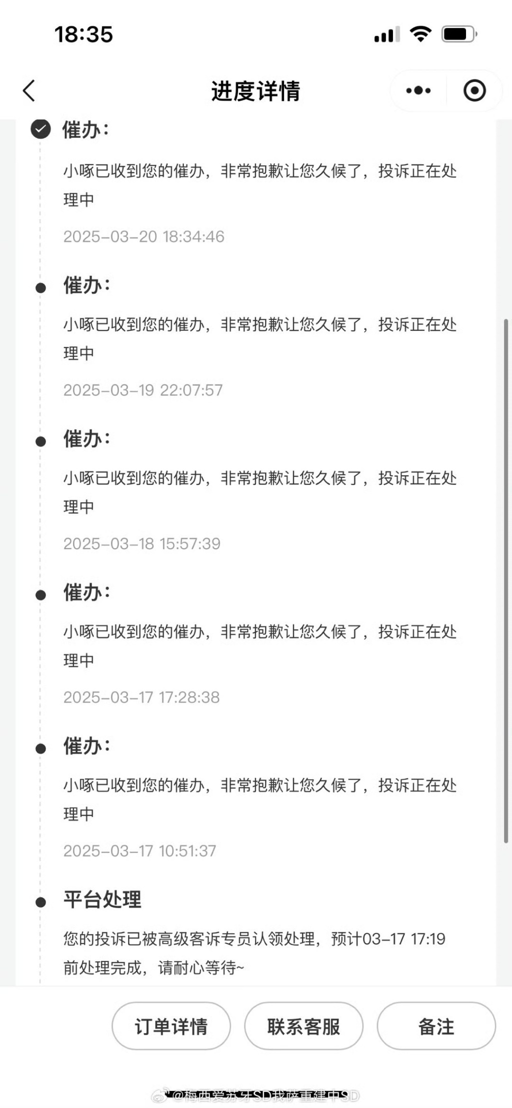 对啄木鸟整改进度的消费者留言