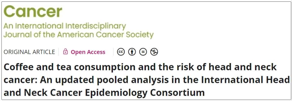 ②Nguyen T, Koric A, Chang CE, et al. Coffee and tea consumption and the risk of head and neck cancer: An updated pooled analysis in the International Head and Neck Cancer Epidemiology Consortium. Cancer. 2024 Dec 23.