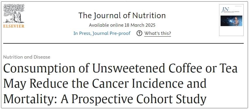 ①Xu J., Wang Y., Wang S., et al, Consumption of Unsweetened Coffee or Tea May Reduce the Cancer Incidence and Mortality: A Prospective Cohort Study, The Journal of Nutrition, 2025,ISSN 0022-3166