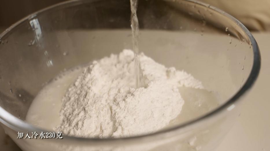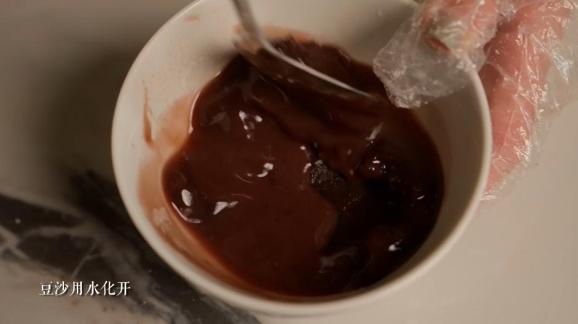 300克糯米粉,230克冷水,适当的白糖,适当的食用油,适当的豆沙,适当的黄豆粉,适当的黄豆粉