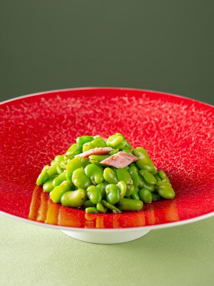 三月也是吃蚕豆的季节,美食家都知道吃蚕豆一定要早。在有着150年历史的上海老字号老酒店,厨师们发现了传统风味,将蚕豆与俗称“刀香”的咸肉结合成“刀香豆瓣”,香气扑鼻,色泽翠绿,非常可喜。