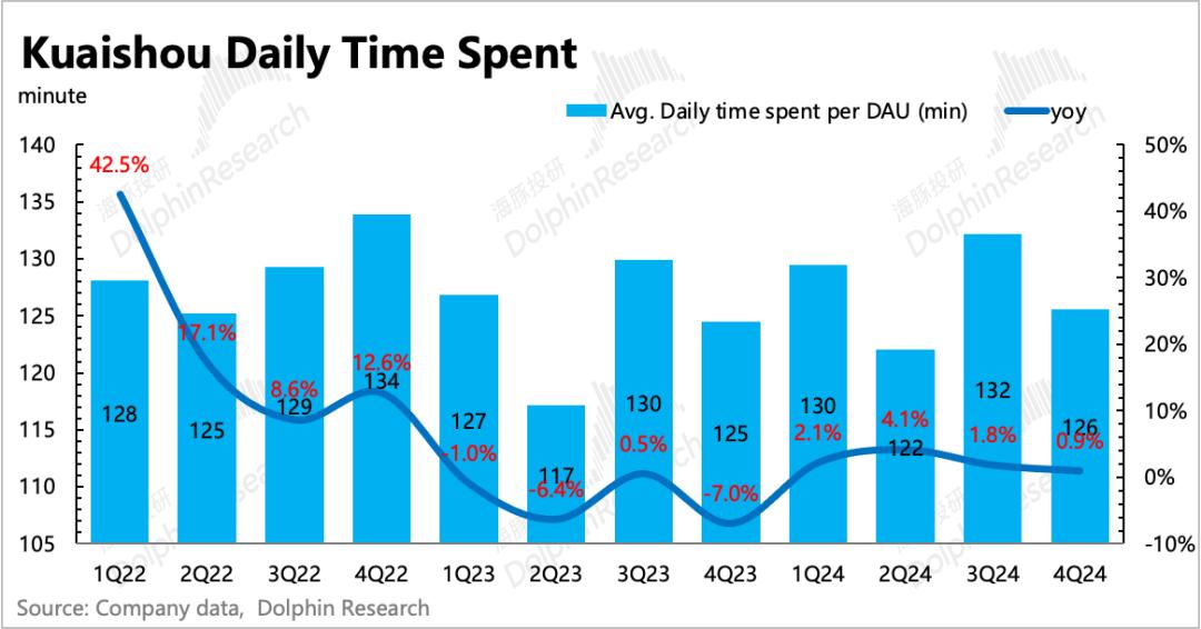 1)日均时间为126分钟/天,同比仅增加1分钟;
