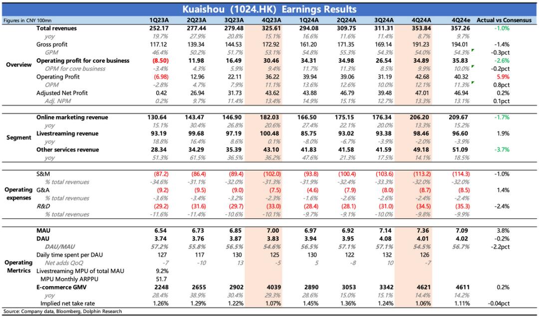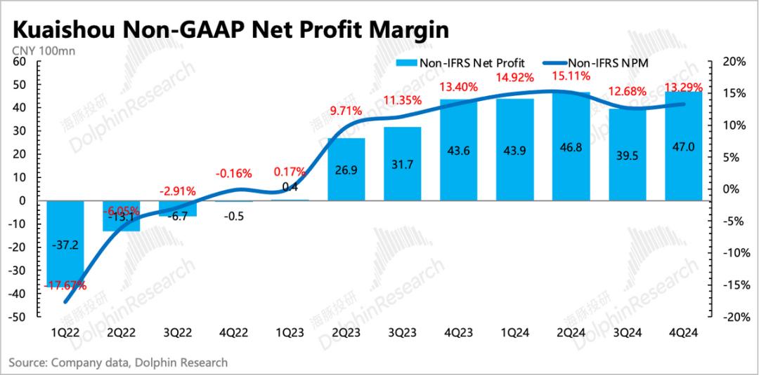 第四季度,快手在GAAP下实现净利润39.7亿元,随着电商旺季的逐月增长。回到SBC、Non-GAAP在投资损益调整后的净利润为47亿,符合市场预测。