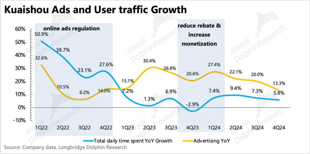 3)由日均时间和DAU计算,单日总客户时间同比增长5.8%。流量增长通常是当前外循环广告增长的动力之一。