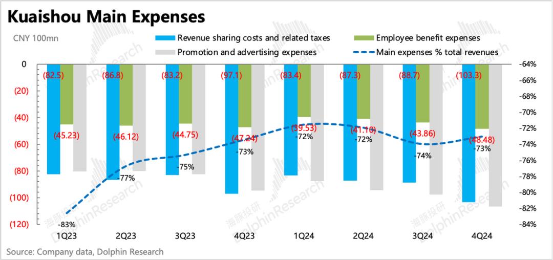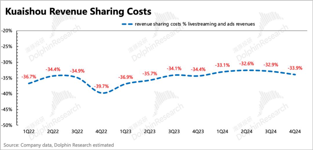 另一方面,海豚君计算的直播收入分成成本比例也可以看出来。第四季度支付给主播的份额比例估计有所提高,可能是高质量的公会会要求更高的份额比例或者固定佣金,尤其是后者,直播毛利率会比较低,直到本期的奖励流量达到稳定规模。