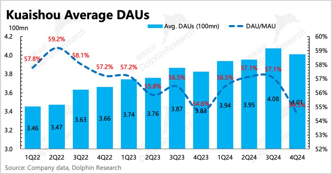 用户使用粘性DAU/MAU的环比明显下降,季节性 新客户受到“快”的多重影响。