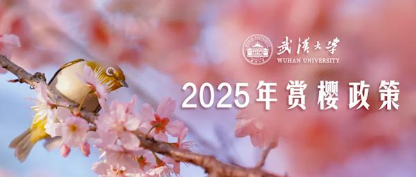 这是武汉大学发布的 2025 年度赏樱政策,樱花开放期间,校门和校内部分地区实行严格控制,控制时间为 3 月 12 日至 3 月 31 日期(适当调整花期结束时间)。