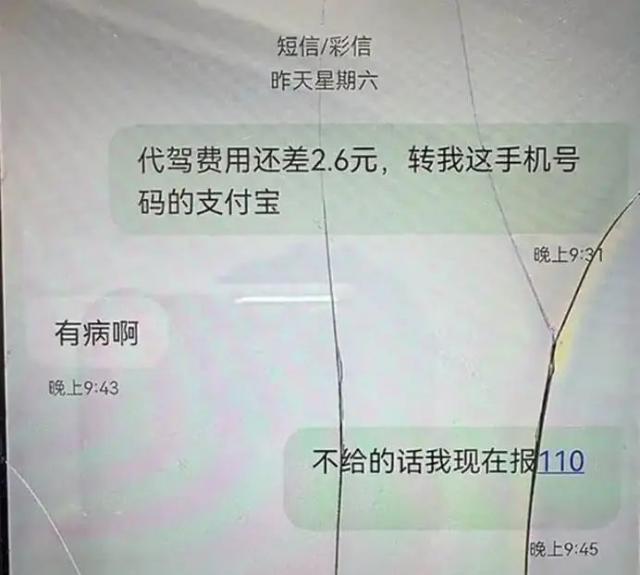 两块六毛钱,按说也没什么大不了的。你买不到一瓶更好的水。但毕竟是劳动收入,没有理由让自己倒贴进去。成先生随后发了一条短信,要求对方补足驾驶费用。没想到,对方回来了。 "有病"。