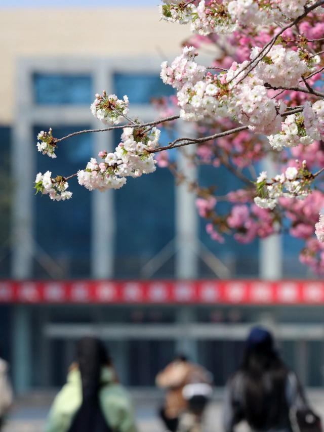 走进校园,海棠花正如火如荼地绽放,粉色和白色的花朵围绕着树枝,就像云一样。春风吹过,花瓣轻轻飘落,像粉色的雨丝一样,在大地上铺上了柔软的地毯。学生要么停下来欣赏,要么拍照留念,把这个春天的美好定格在镜头里。