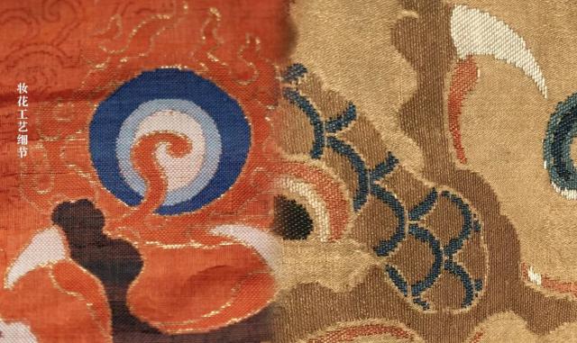 明代服装的细节取决于上述工艺。从远处看,只看到华丽的颜色,但仔细看,有不同工艺的综合体现。例如,化妆是一种常见的装饰工艺。"妆花"这是一个纺织技术术语,始于明代《天水冰山录》,与不同的面料组合有“妆花缎”、"妆花绸"、"妆花罗"、"妆花纱"、"妆花䌷"、"妆花绢"、"化妆花锦"等等。这一工艺是在织布过程中完成的,通过不同的颜色线织出一条局部线条,所以很难。
