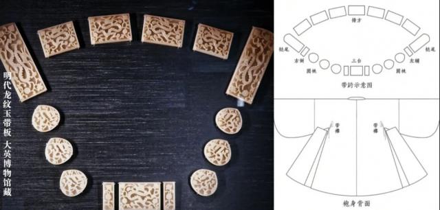 其中,玉带是身份的象征,当时的“蟒袍玉带”已经成为一种显赫的着装。玉带上的玉带板数量也显示了主人的地位, 20 块左右是常见的。明初,玉带实际上束在腰上。但明中期以后,玉带更多的是作为礼仪和身份的象征。上面的装饰越来越复杂,有更多的虚束和宽松的束缚。所以可以看出这种皮带会出现在衣服上,只是为了防止玉带过重滑落。