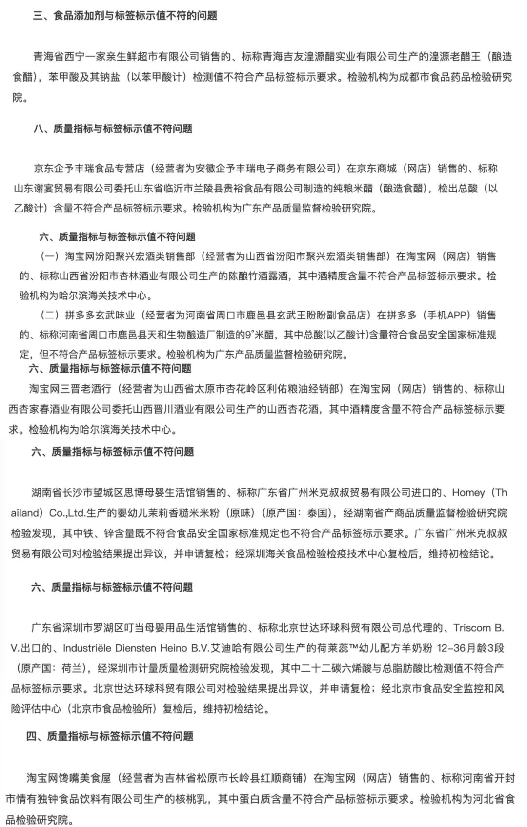 2024年至今,「质量标准与标签标签价值不符问题」的情况,已有 35 条。这是今年最后一次发布的公告,并开始单独列出「食品添加剂和标签的标签价值不符问题」的情况。
