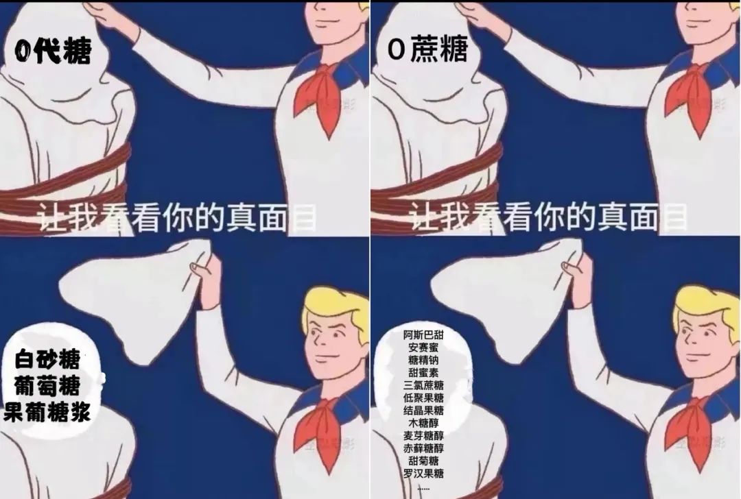 「0蔗糖」是加代糖的,「0代糖」就是加了蔗糖,「0添加糖」本来就含有糖分。