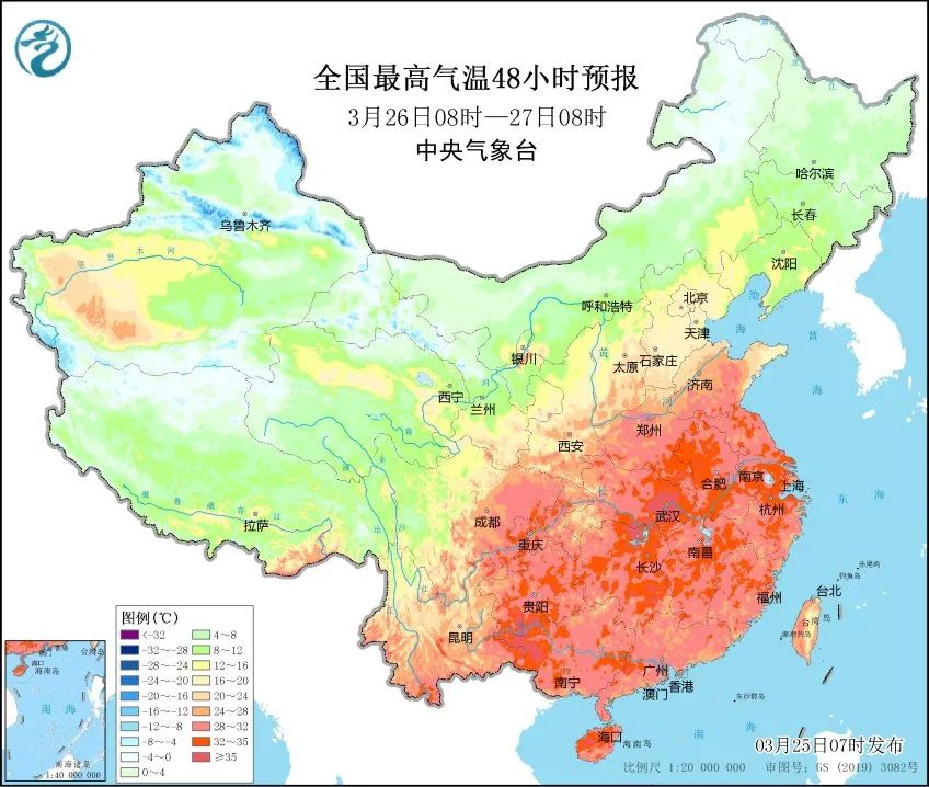 今日(三月二十六日)保持晴转多云的天气,也将是这波升温的“顶点”。早晨全市气温一般为11~17℃,预计今天最高可达32℃。偏南风3~4级,中午起4~5级,临江沿海城市阵风6级。95%~30%的相对湿度。但在冷空气到来之前,这也是暖湿的最后坚持!今晚前后部分地区阴凉处有短时阵雨,随后,从下午到明天会有阵雨或雷雨。提醒大家及时关注天气变化,晚归最好准备雨具。