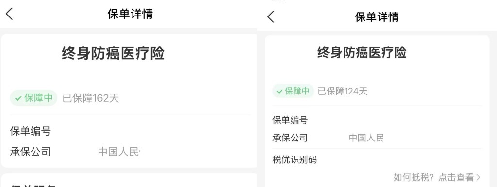 同样的健康险商品,左边是不能享受税收优惠的老商品,右边是税收优惠的商品。
