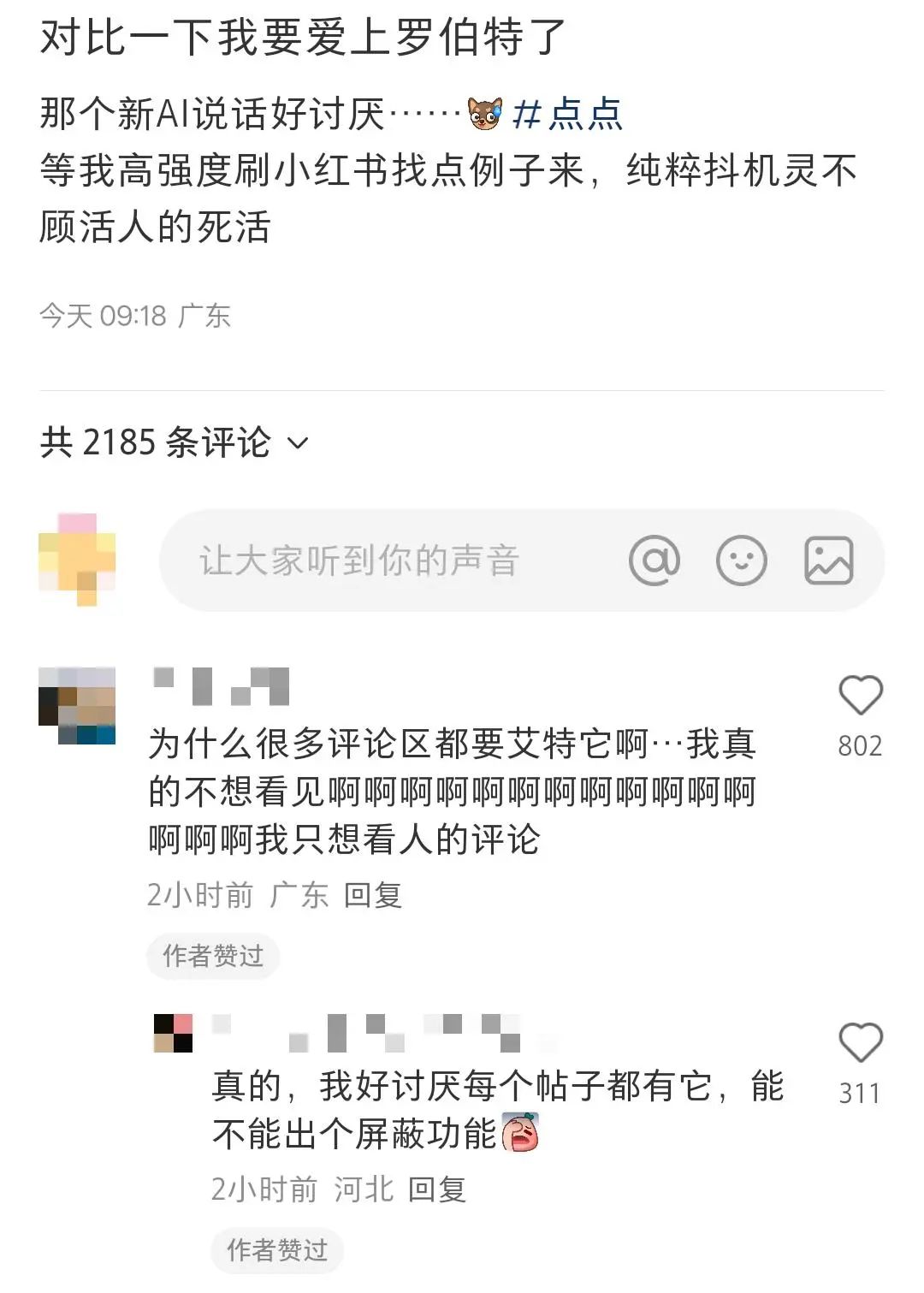 但是胖鲸也注意到了,植入评论区 AI 这一举动,在获得大量关注的同时,也让一些社区用户和创作者感到得罪,激发了反感。