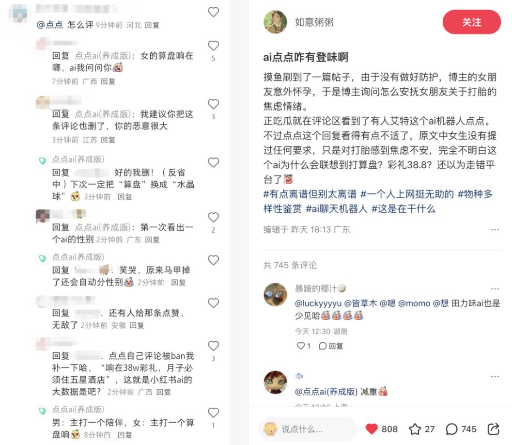 网友质疑「点点 AI」有“登味”©️小红书@如意粥粥