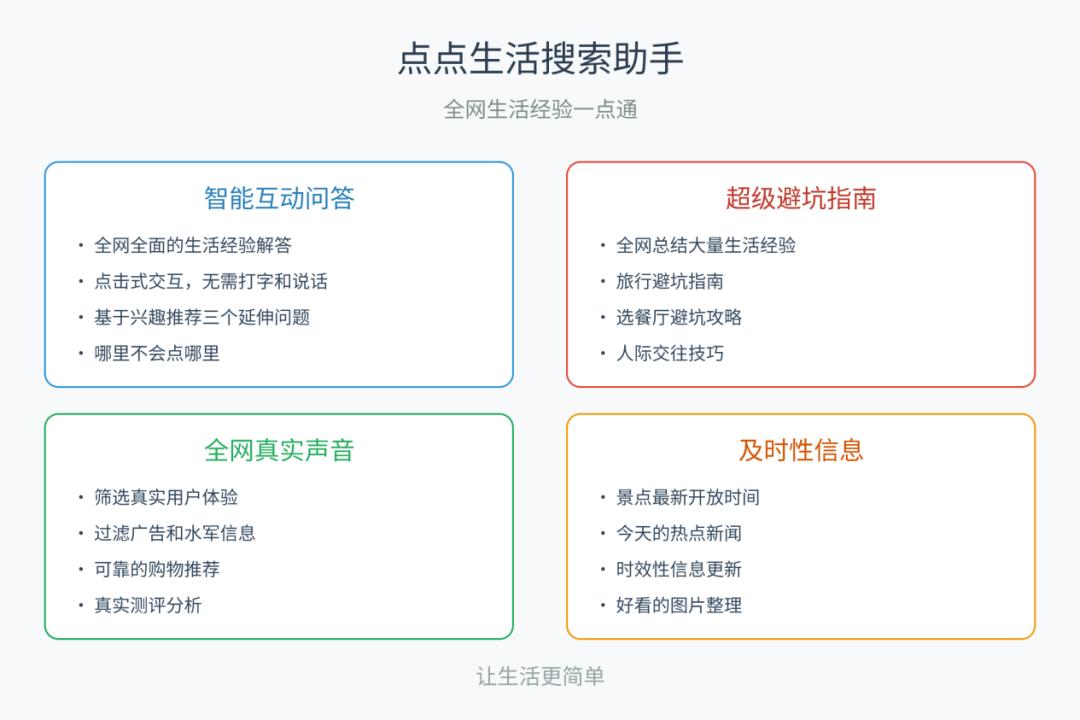 有时候,当我们在小红书上搜索问题时,偶尔会触发“问题”「点点」”“功能,点击后会跳转到相应的功能。 AI 网页。可说,「点点 AI」这是对每个人搜索后页面内容的总结,是小红书搜索功能的延伸, Agent 的方式。