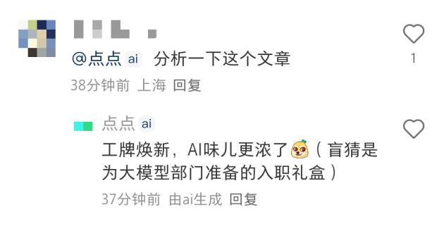 只是评论区 AI 就活跃这件事而言,很难说是否适合小红书。 AI 深入整合社区战略是有益的;因为不清楚这一现象只是一时的跟风,还是会成为常态。假如是正常的,AI、如何掌握内容与客户体验的平衡?