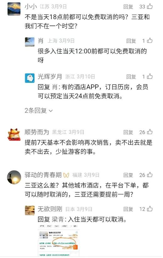 「三亚这么差?其它城市的酒店,在平台上下单,随时都可以取消,三亚还要提前一周?」